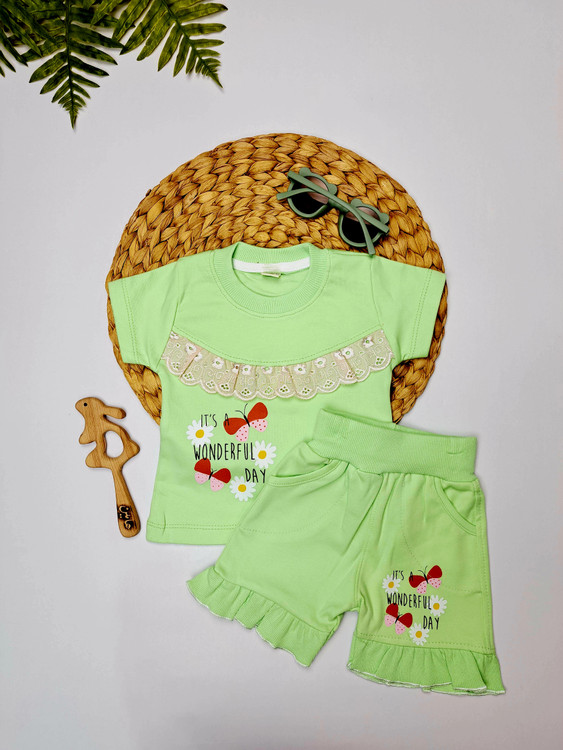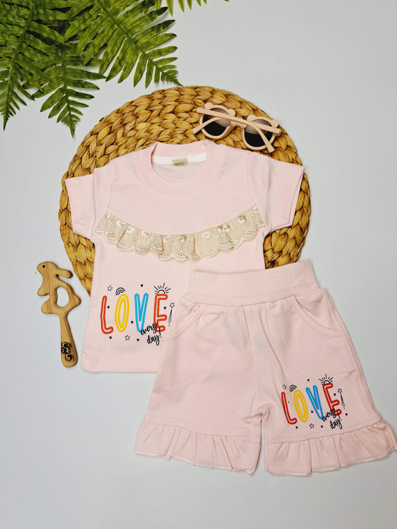 تیشرت شورتک نخ پنبه دو رو دخترانه