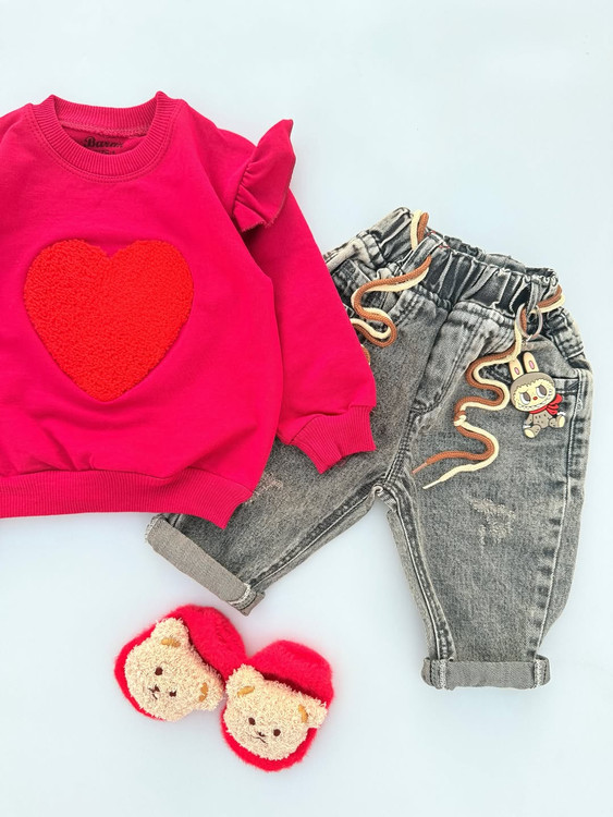 دورس نوزادی مدل قلب گلدوزی و تدی چاپی نخ پنبه لاکرا سایز 4 تا 36 ماه