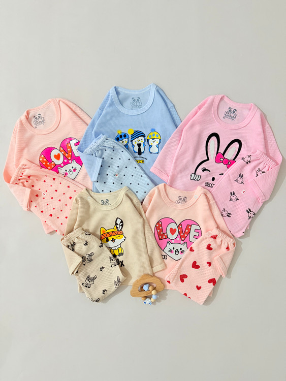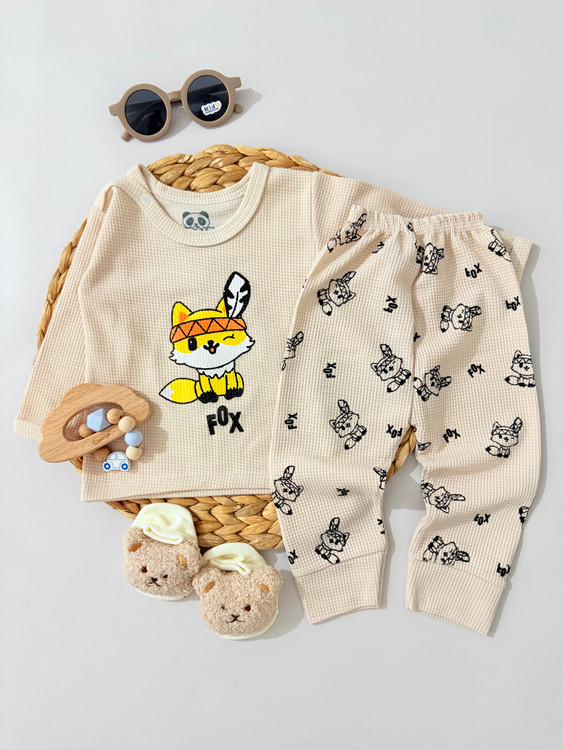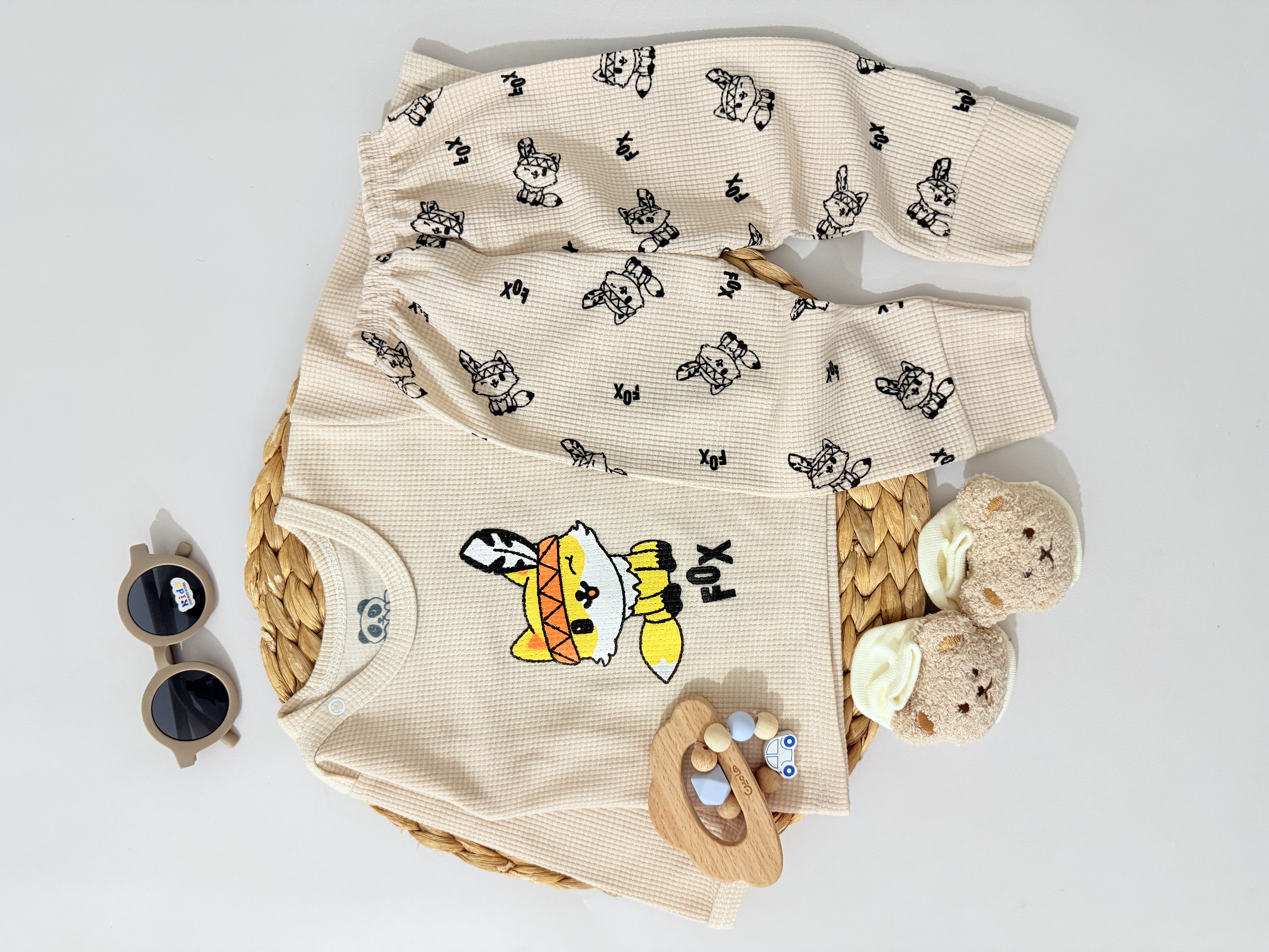 بلوز شلوار بیسکوییتی چهار فصل نوزادی تا ۲ سال