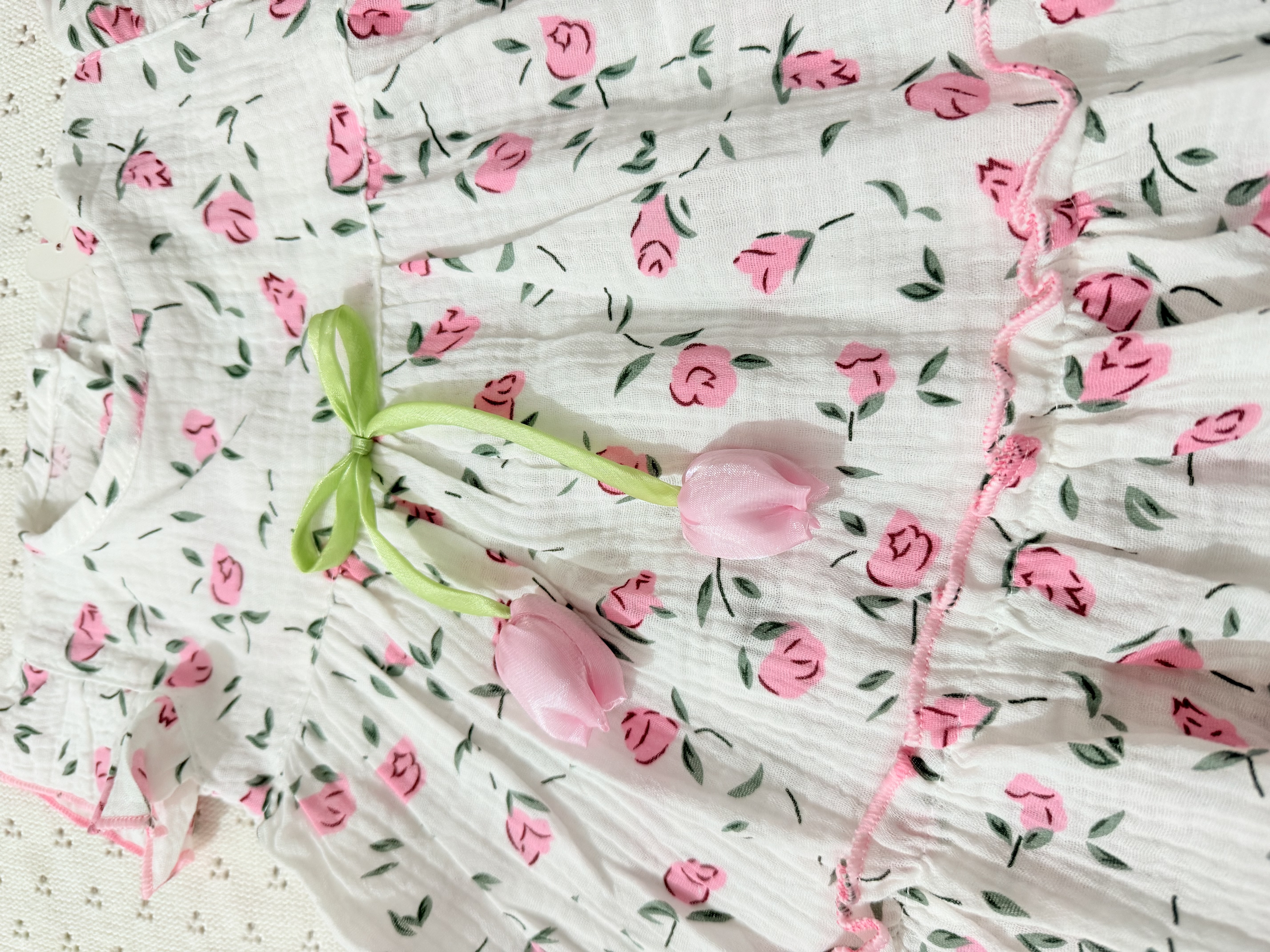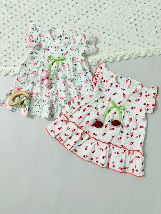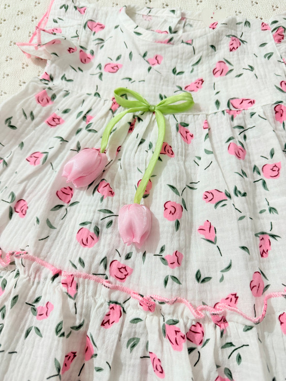 سارافون گلدار موسلین مناسب ۶ ماه الی ۴ سال