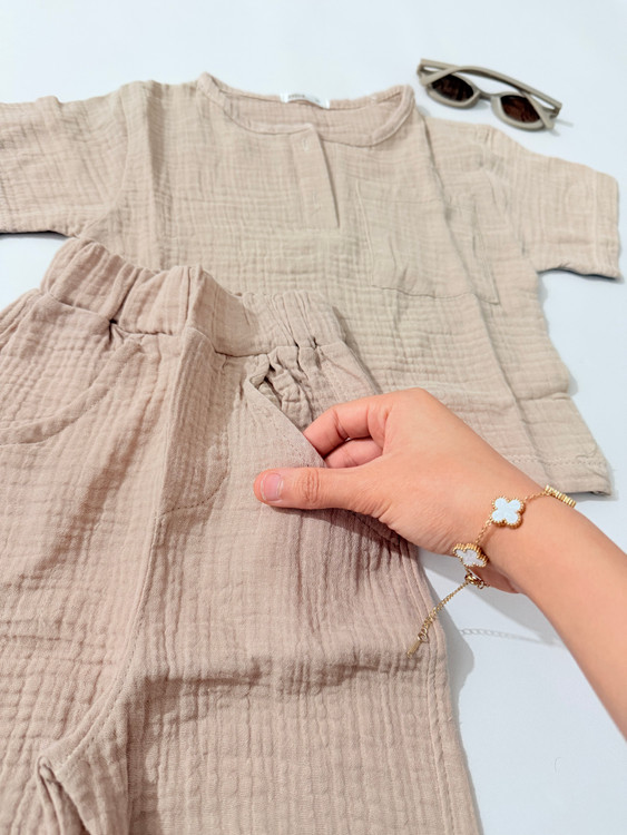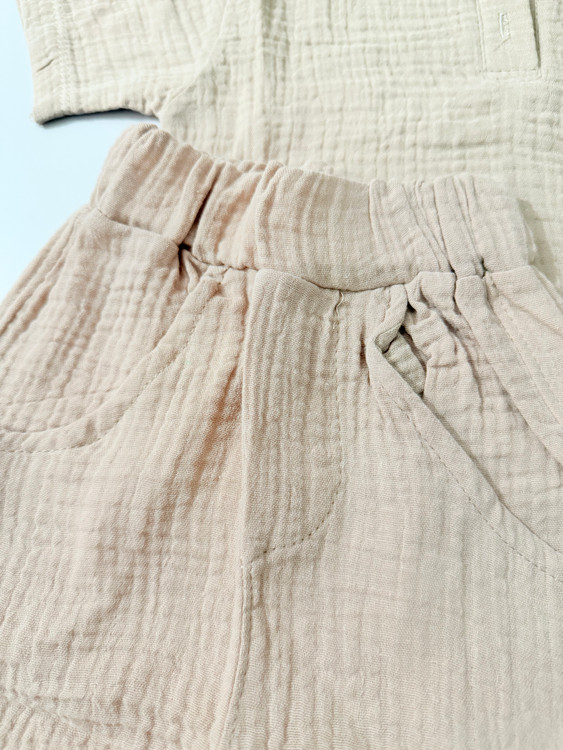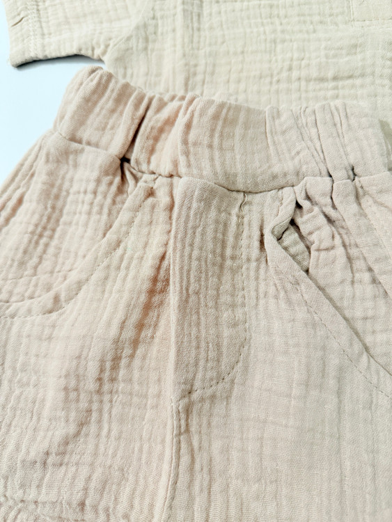 بلندی تیشرت ۴۲/۵، پهنا۳۵/۵، بلندی شلوارک ۴۲، فاق ۲۶/۵