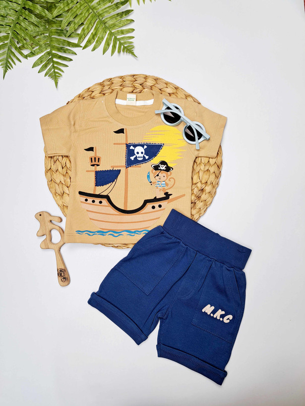 تیشرت شورتک نخ پنبه دو رو پسرانه