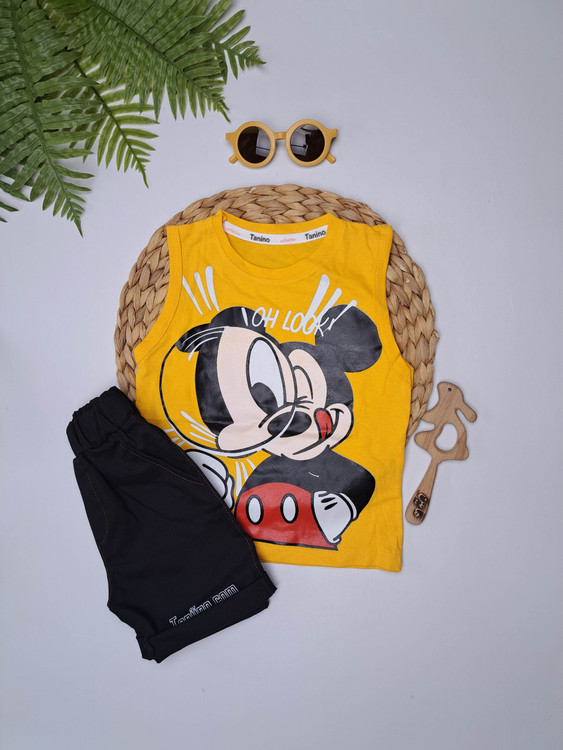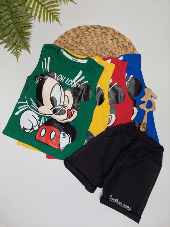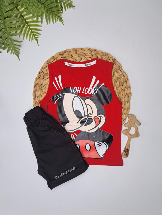 ست رکابی و شلوارک بچگانه با طرح محبوب میکی موس، انتخابی اسپورت و شاد برای کودکان دختر و پسر در روزهای گرم تابستان.