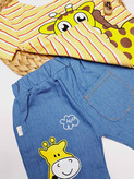 تیشرت شورتک پسرانه نخ پنبه جین طرح زرافه