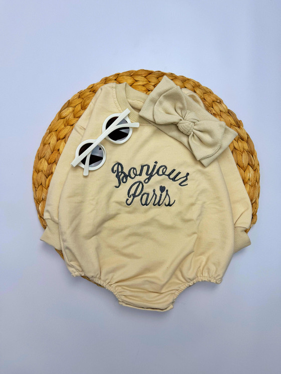 بادی آستین بلند نوزادی گلدوزی هلو پاریس – دورس نخپنبه دورو (۳تا ۲۴ ماه)