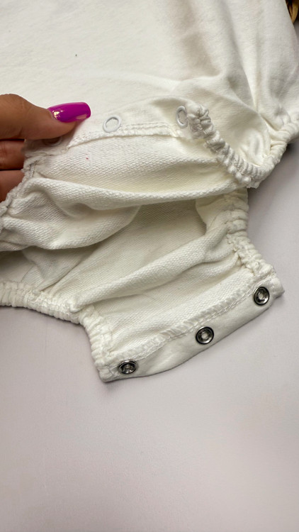 دارای سه دکمه در فاق، یقه کشی برای عبور راحت از سر کودک، و طراحی کاربردی برای آزادی حرکت.